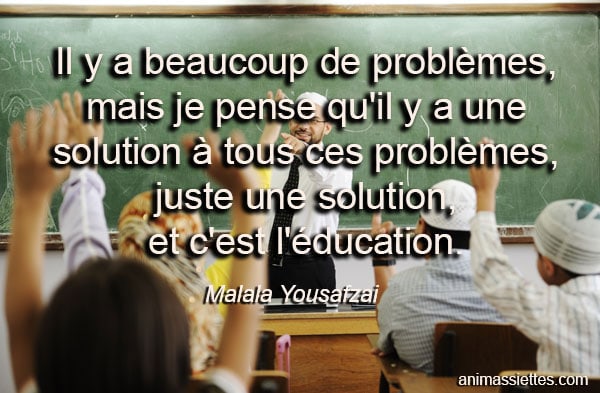 Il y a beaucoup de problèmes, mais je pense qu’il y a une solution à tous ces problèmes, juste une solution, et c’est l’éducation.